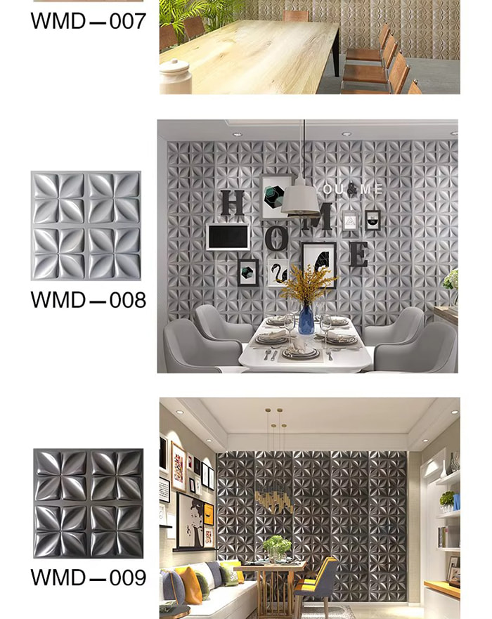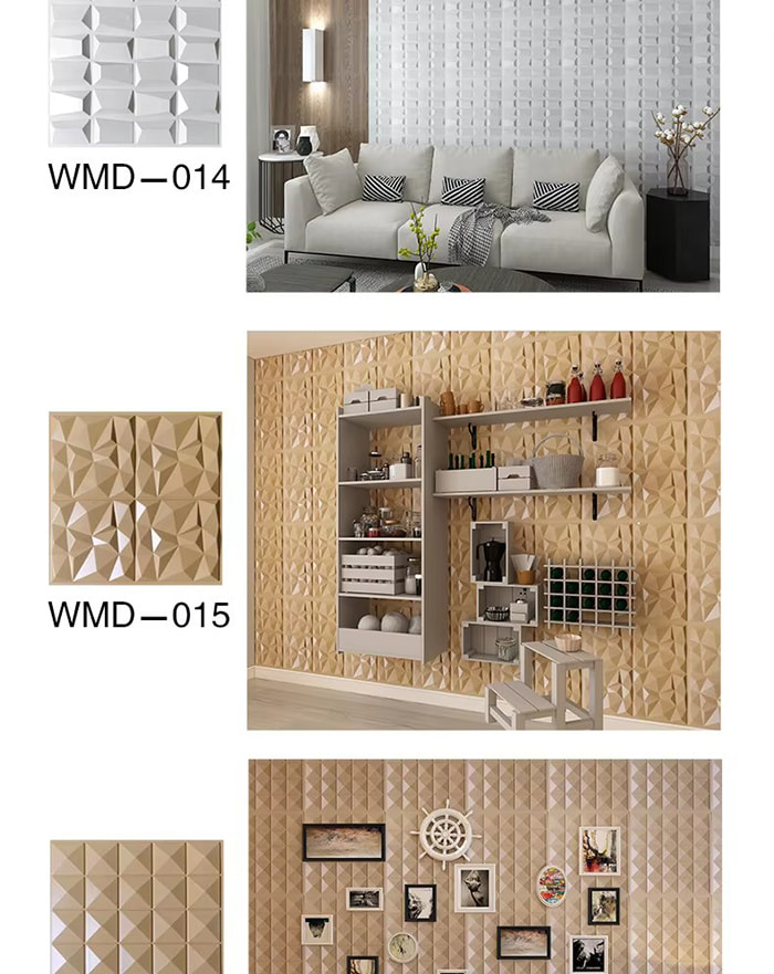Les panneaux muraux 3D sont un nouveau type de matériau décoratif. Grâce au pressage à chaud, à la gravure et au fraisage ou à l'impression CNC, des motifs tridimensionnels sont formés sur la surface des panneaux. Ses matériaux de base comprennent le PVC, les panneaux de densité, l'alliage d'aluminium, la fibre de bambou, etc. En prenant le PVC comme exemple, les matériaux composites de haut poids moléculaire sont extrudés à haute température et les motifs de surface sont pressés par des moules en acier de précision, avec une précision concave et convexe minimale atteignant 0,1 mm. Les panneaux muraux 3D ont un effet visuel tridimensionnel. Grâce au principe de réfraction de la lumière et de l'ombre, le plan 2D est transformé en un effet visuel 3D avec une sensation de profondeur, et la superposition visuelle est augmentée de plus de 3 fois sous la même zone.