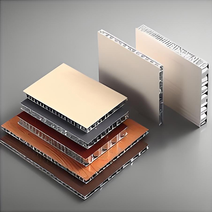 Le panneau mural en nid d'abeille en aluminium est une structure sandwich composée de deux couches d'aluminium et d'une âme en nid d'abeille. Le panneau est principalement constitué d'une plaque d'aluminium en alliage 3003H24 de haute qualité ou d'une plaque d'aluminium en alliage à haute teneur en manganèse 5052AH14 comme matériau de base, avec une épaisseur de panneau de 0,8 à 1,5 mm et une épaisseur de plaque inférieure de 0,6 à 1,0 mm. Le noyau en nid d'abeille est constitué d'une feuille d'aluminium 3003 très fine d'une épaisseur de 0,04 à 0,06 mm et d'une longueur de côté de 5 à 6 mm. Il a une structure hexagonale en nid d'abeille avec des trous reliés les uns aux autres. L'ensemble du processus de traitement est réalisé dans une usine moderne utilisant la technologie de pressage à chaud.