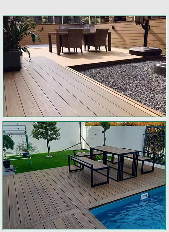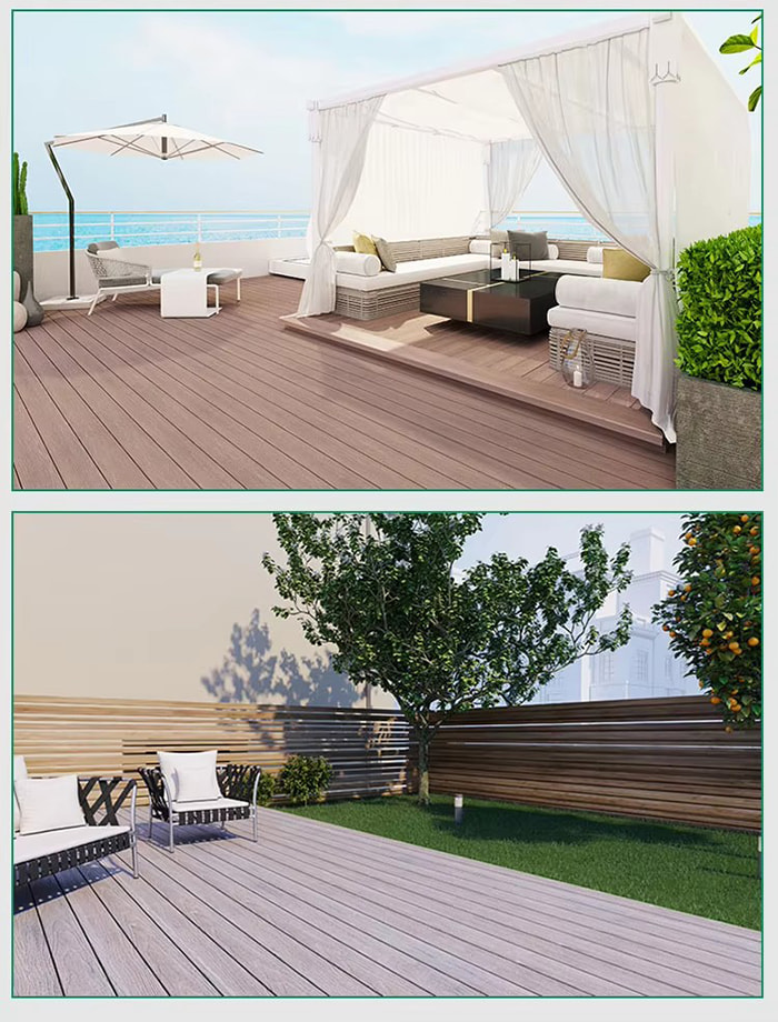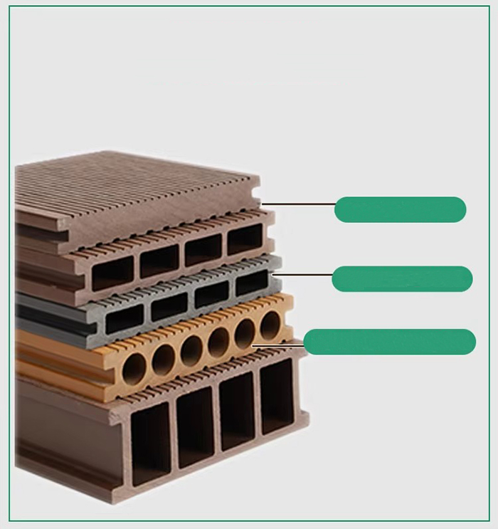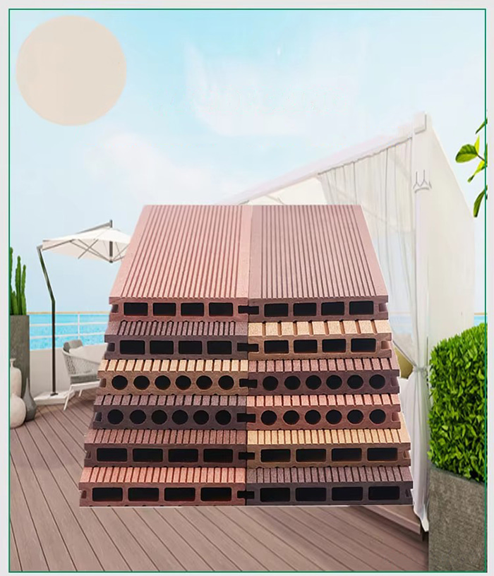 Le sol WPC (Wood Plastic Composite) est un nouveau type de sol respectueux de l'environnement composé de fibre de bois ou de fibre de bambou comme matière première principale, mélangée à de la résine PVC, un ignifuge, etc. par un processus à haute température et haute pression. Sa structure est divisée en quatre couches : couche résistante à l'usure (revêtement UV), couche décorative à grain de bois/grain de pierre, couche de matériau de base renforcée par des fibres et couche silencieuse. Il a à la fois la texture du bois véritable et les performances imperméables et résistantes à l'humidité du plastique, et convient à la décoration de sol en intérieur et en extérieur.