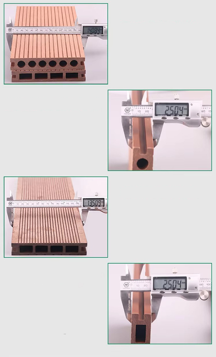 Mélange de substrat Fibre de bois (50-60 %) Résine PVC (30-40 %) Couche anticorrosion en fibre de carbone (5-10 %), ajout d'un ignifugeant d'hydroxyde d'aluminium pour améliorer le grade A2.