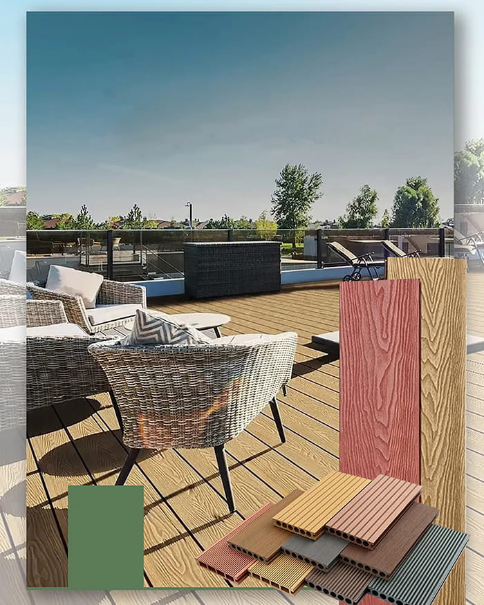Matériel: Composite de fibre de bois et de thermoplastique (comme le polyéthylène ou le polychlorure de vinyle)