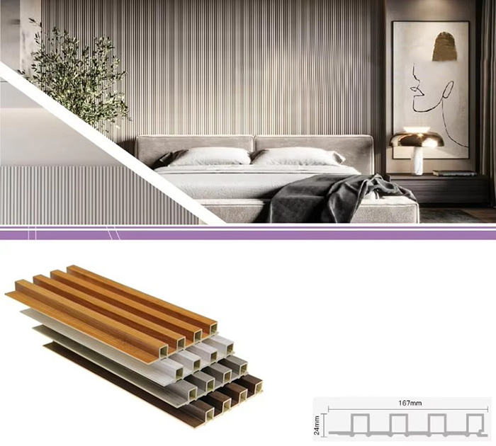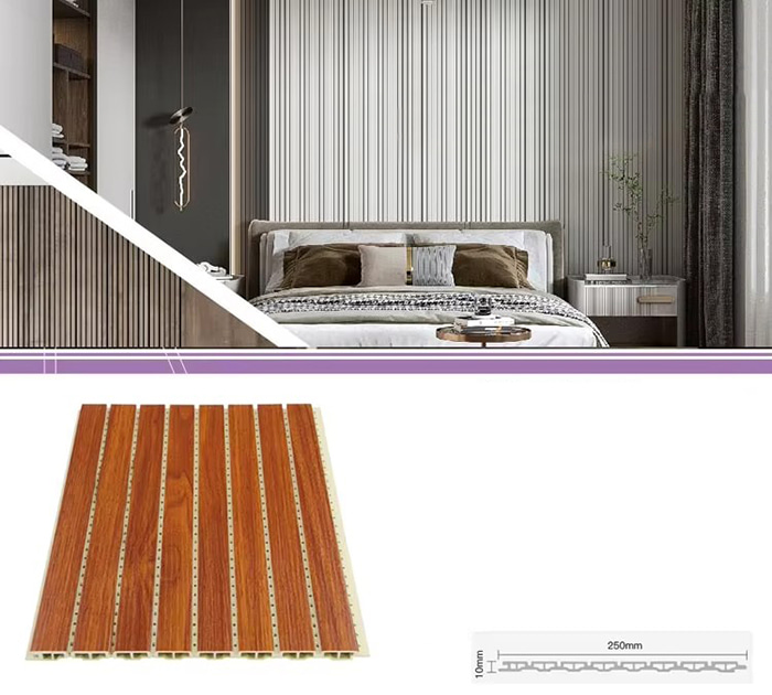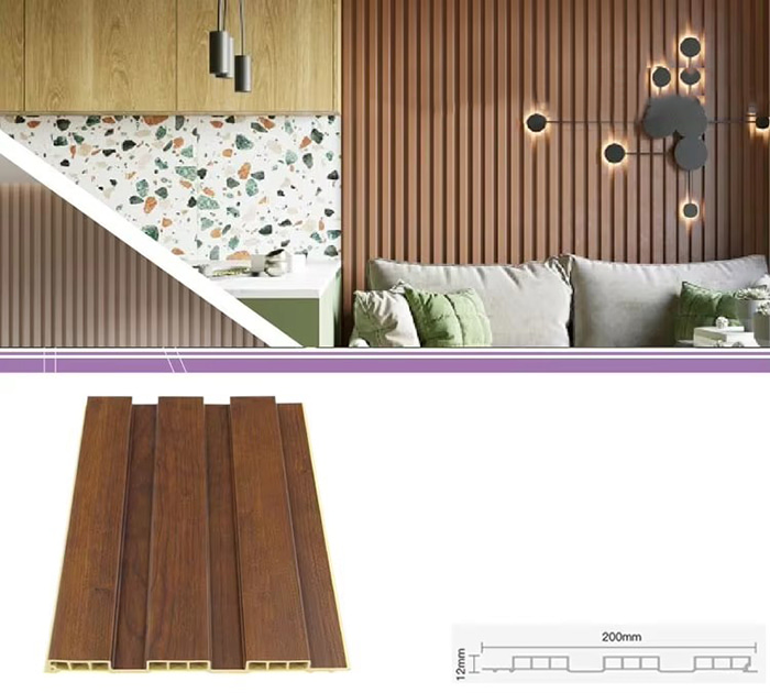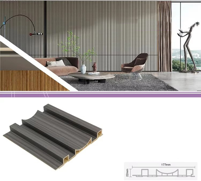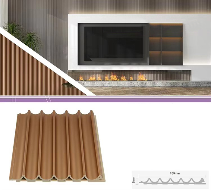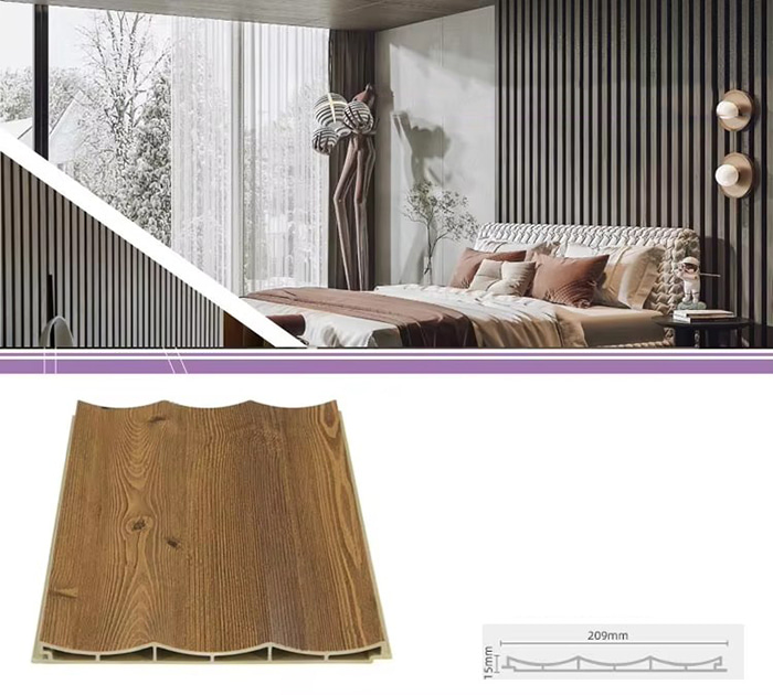 Les panneaux intérieurs WPC, ou panneaux intérieurs composites bois-plastique, sont un nouveau type de matériau de construction respectueux de l'environnement fabriqué à partir de fibre de bois ou de poudre de bois combinée à des thermoplastiques (tels que le polyéthylène, le polypropylène ou le polychlorure de vinyle). Ce matériau est fabriqué selon un processus de moulage par extrusion à haute température et la surface est généralement décorée par laminage, impression 3D ou laminage d'un film, montrant une texture naturelle et une sensation similaire à celle du bois, tout en ayant la durabilité et la résistance aux intempéries du plastique. Les panneaux intérieurs WPC ont non seulement le bel aspect du bois, mais surmontent également les défauts du bois tels que la déformation facile, l'absorption de l'humidité et la pourriture, ce qui en fait un matériau de décoration intérieure idéal