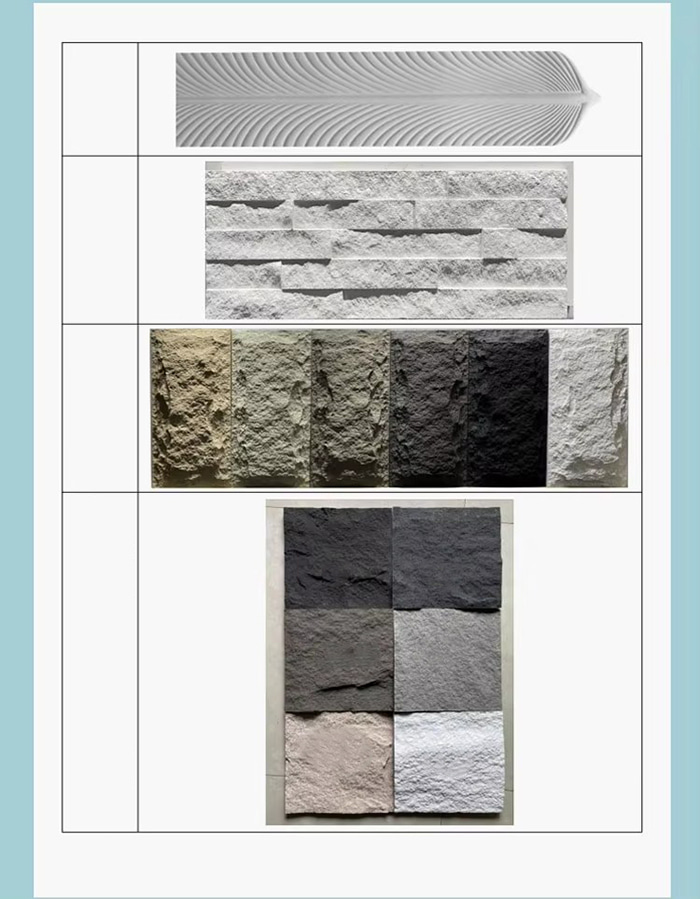 Le panneau mural en PU est un matériau polymère à base de polyuréthane (PU). La surface est généralement recouverte d'un revêtement à haute résistance, qui présente les caractéristiques de résistance aux acides, de protection solaire et de résistance aux UV. Il peut être fabriqué selon la texture de la vraie pierre, du bois, etc. et un savoir-faire spécial, avec une texture réaliste et délicate. Le panneau mural en PU est principalement utilisé pour la décoration murale et peut être appliqué sur les murs intérieurs et extérieurs des bâtiments.