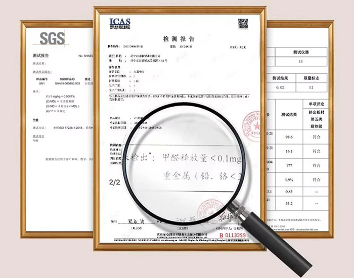 Sécurité environnementale Les matières premières sont sans formaldéhyde, sans métaux lourds, certifiées CARB/FSC et 100 % recyclables.