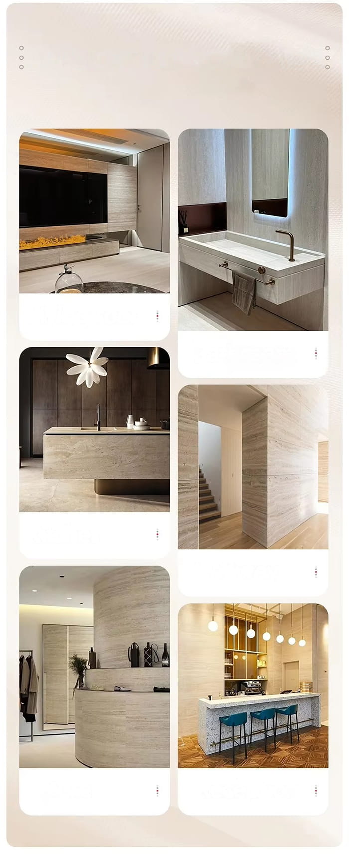 Murs intérieurs du bâtiment : Peut être utilisé pour la décoration murale intérieure des résidences, bureaux, hôtels, centres commerciaux, écoles, hôpitaux, immeubles de bureaux, villas, communautés haut de gamme, etc., tels que murs de fond, cuisines, salles de bains et autres espaces.