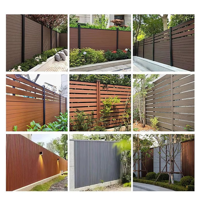La clôture WPC est un matériau de clôture respectueux de l'environnement composé de fibres de bois recyclées et de plastique polyéthylène haute densité (PEHD). Il a une texture et un aspect similaires au bois véritable, mais évite les fissures, la déformation, la pourriture et d'autres problèmes qui peuvent survenir avec le bois véritable. La clôture WPC est résistante à l'humidité, à la corrosion, à la chaleur et aux termites, et peut être teinte ou colorée pour répondre aux spécifications de conception requises. Son processus d'installation est simple et rapide, et ne nécessite pas de peinture régulière ou d'autres travaux d'entretien, ce qui réduit le coût d'utilisation.